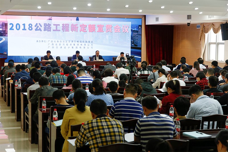 4月17日至18日,由自治区交通工程造价管理站、广西北部湾投资集团、广西交通设计集团承办的2018年公路工程新定额宣贯会议在交通设计大厦顺利召开。自治区交通运输厅建设管理处副调研员韦红亮、自治区交通工程质量监督站副站长陈剑、北投集团总工办副主任王晨等领导出席会议。我集团公司副总经理张观树参加会议。交通运输部路网监测与应急处置中心安排4名资深专家进行专题宣贯,来自自治区交通运输厅、各地市交通运输局、自治区高速公路管理局、广西交通职业技术学院以及广西北部湾投资集团有限公司、广西交通投资集团有限公司等单位的工程造价从业人员近250人参加会议。