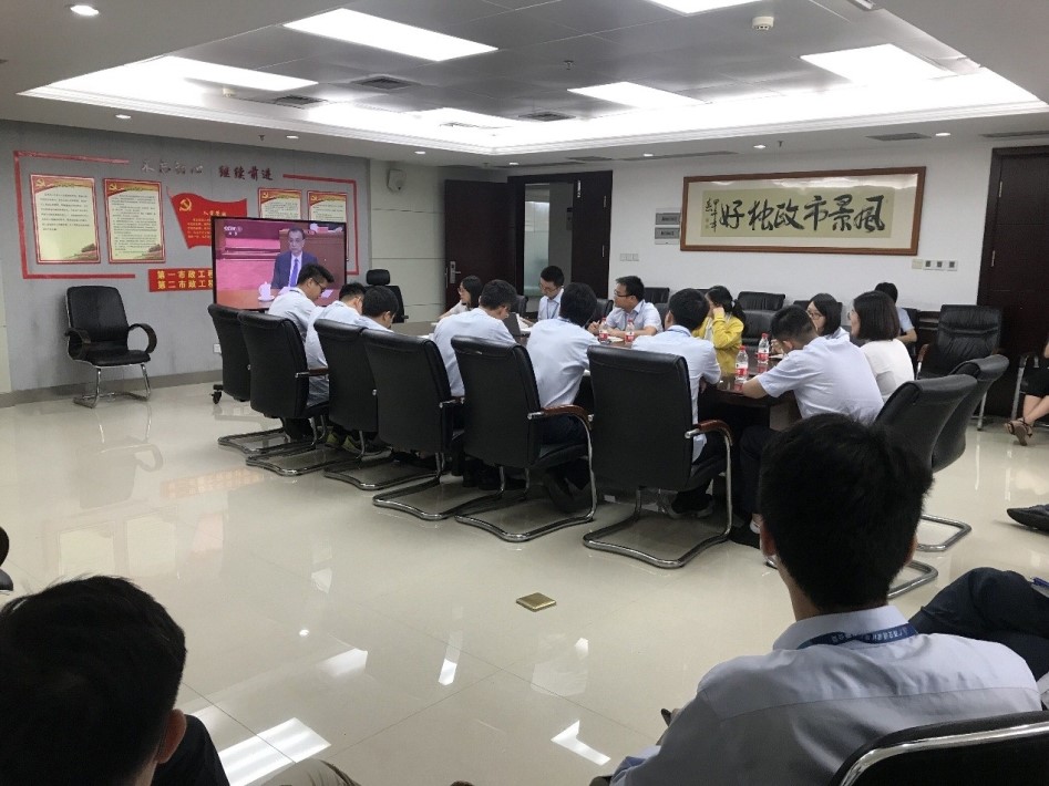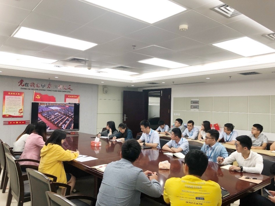 为了第一时间收看纪念五四运动100周年大会盛况,集团公司团委组织广大团员青年和团干部早早地在各支部会议室迎接大会直播,部分出差在外的公司青年团员也积极利用电脑、电视机及移动设备收看纪念五四运动100周年大会直播。