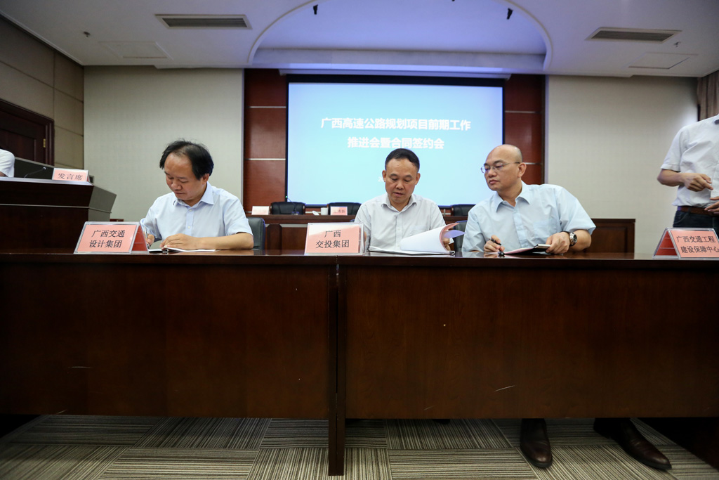 会上,广西交通工程建设保障中心、广西交通投资集团与包括我集团公司在内的15家中标企业共同签署了合同。