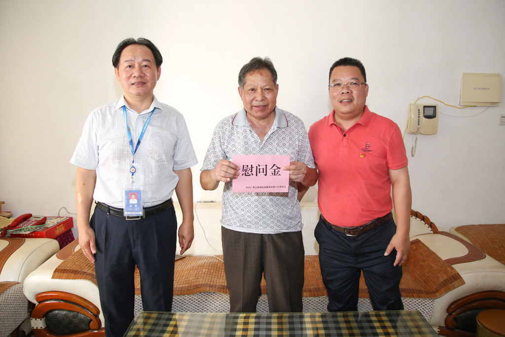 为贯彻落实自治区关于开展“不忘初心、牢记使命”主题教育的有关要求,6月28日,受北投集团党委副书记、工会主席曾庆生委托,北投集团总经理助理、党委工作部部长黄凌志到我集团公司慰问困难党员活动。我集团公司党委书记、董事长周铮,工会副主席李善锋陪同慰问。