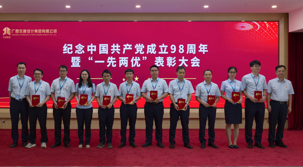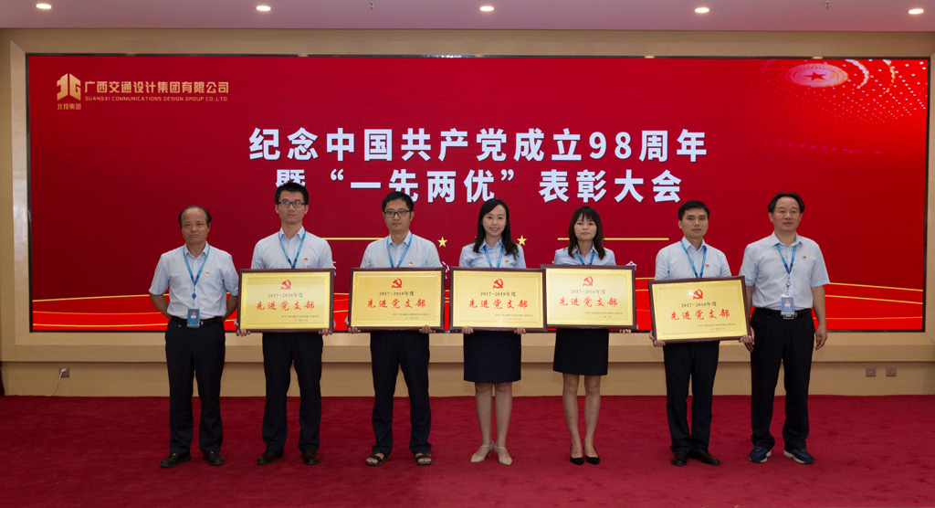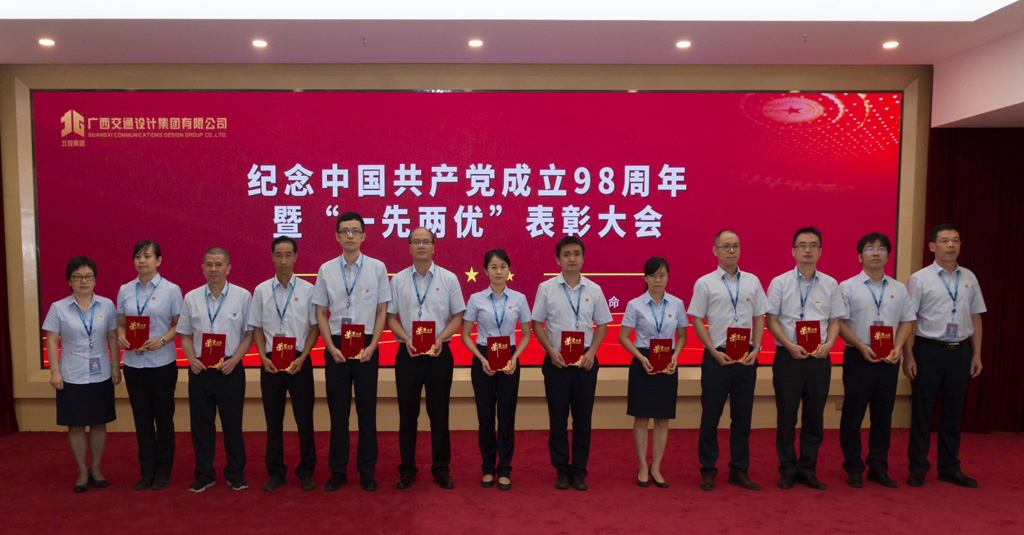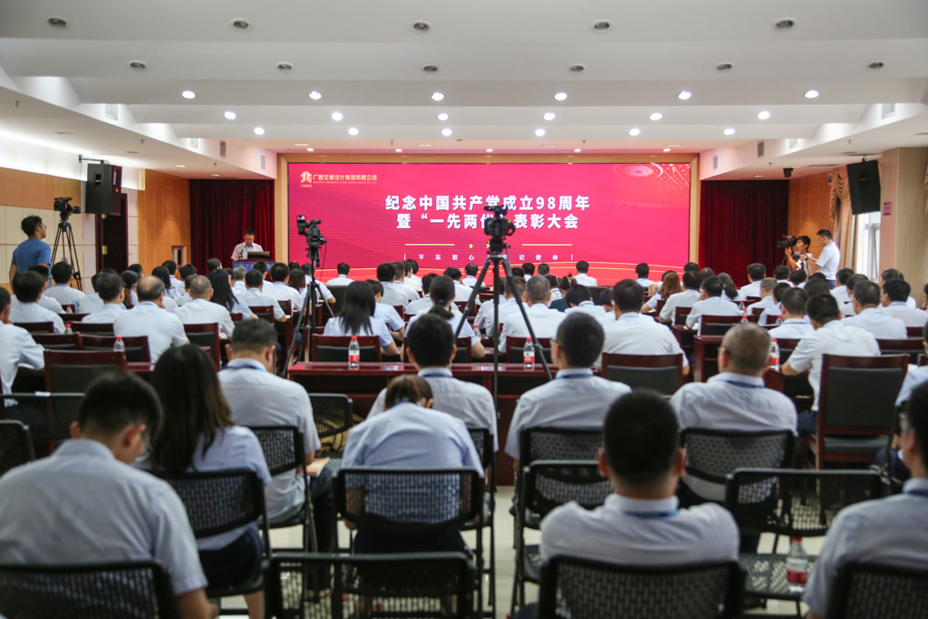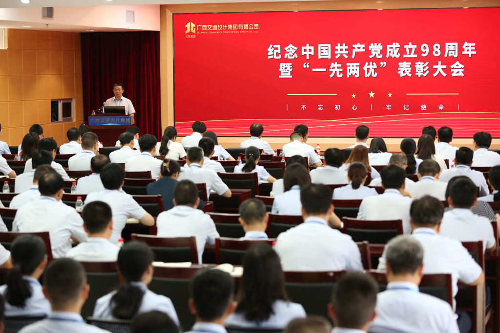 7月1日,为庆祝中国共产党成立98周年,进一步贯彻落实习近平新时代中国特色社会主义思想和党的十九大精神,深入贯彻落实党中央、自治区党委和北投集团党委开展“不忘初心、牢记使命”主题教育的部署要求,集团公司党委在交通设计大厦召开中国共产党成立98周年庆祝大会暨“一先两优”表彰大会。集团公司党委书记、董事长周铮,党委副书记、工会主席阮志新出席会议并讲话,集团公司其余领导班子成员,集团公司全体在职党支部党员、离退休党支部党员代表参加会议。