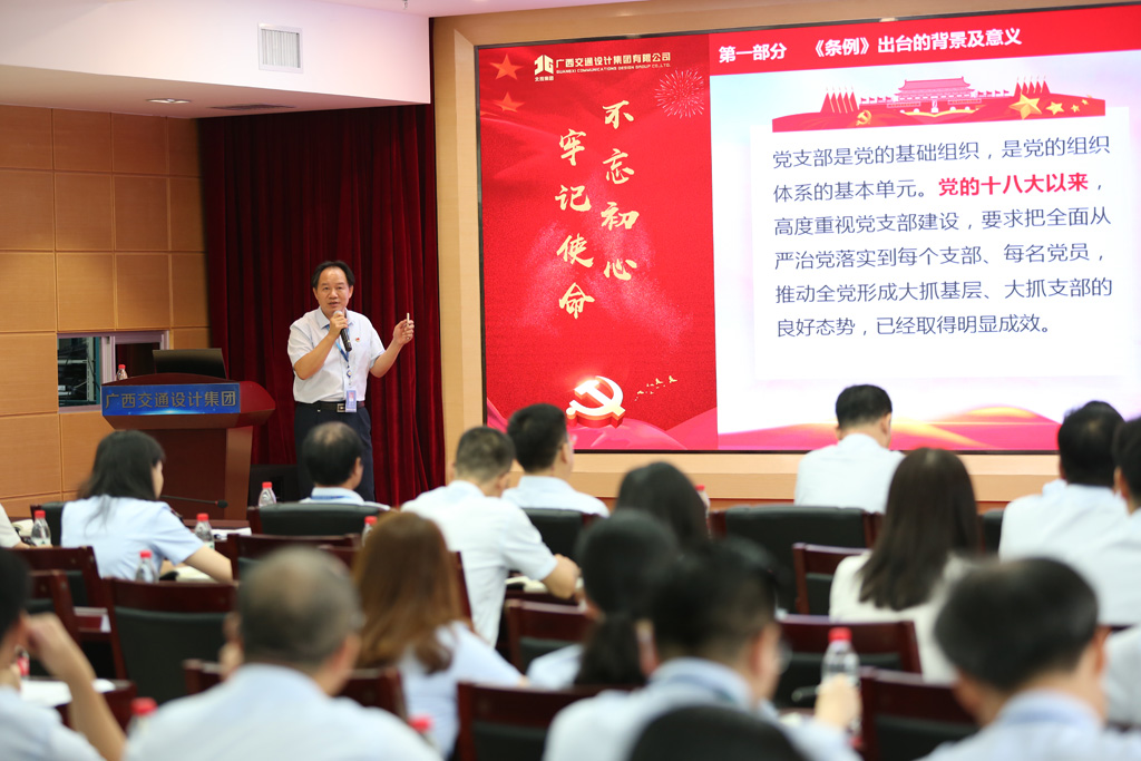 周铮以《中国共产党支部工作条例(试行)》(以下简称《条例》)为题,向与会党员上一次专题党课。他指出,《条例》是落实习总书记全面从严治党延伸到基层重要指示的战略举措;是落实新时代党的组织路线,加强党支部标准化、规范化建设的指导性文件,是新时代加强党的组织体系建设的制度创新。作为党务干部,我们要全面学习领会贯彻《条例》新要求、新规定、新部署,把抓好党支部作为组织体系建设的基本内容,作为管党治党的基本任务,不断提升党组织的创造力、凝聚力和战斗力。
