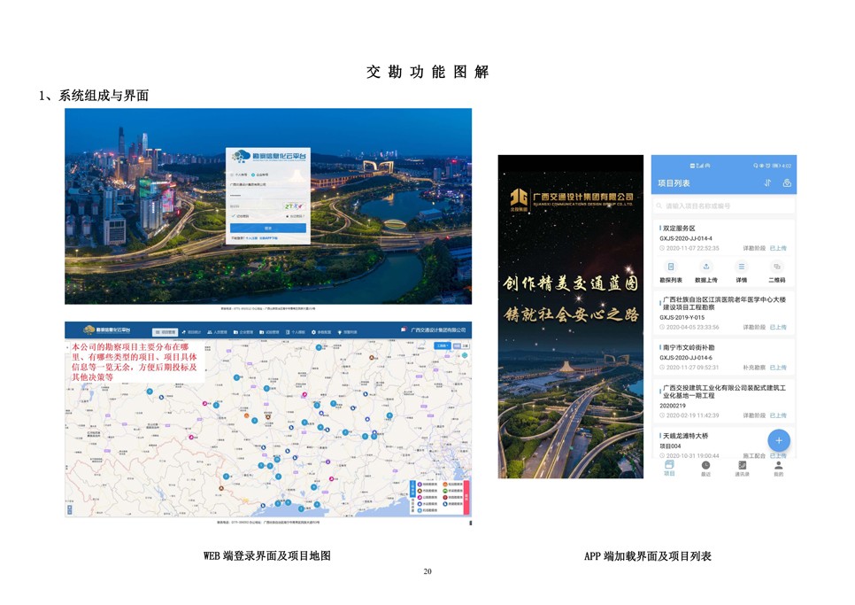 “交通运输政务数据治理工程”项目实现了交通运输行业的数据共享和业务协同,为广西交通运输行业数据治理和共享交换提供重要的技术支撑。“勘察信息化关键技术研究与应用”项目大幅提高了勘察工作效率和质量,为广西工程勘察信息化技术的引进、应用、推广起到了良好的示范带头作用,应用前景广阔。“山区高速公路电动无拉杆整体式通涵模板台车施工技术研究”项目为提升山区高速公路通道、涵洞墙身施工的工效及外观效果,提高墙身模板施工的标准化、机械化、自动化程度,设计无拉杆的涵洞墙身浇筑台车将加快施工进度,减少钢管支架等施工措施费的投入,且外观质量好、安全系数高,对于打造高品质施工具有重要意义,具有较高的推广价值。“广西荔浦至玉林高速公路相思洲大桥”项目在设计施工上采用内河紧邻航道无大型设备条件下致密型砂卵石层双壁钢围堰安装技术等多项创新技术,对广西区内同类型桥梁建设具有借鉴意义。