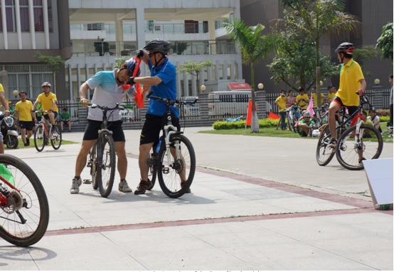 2014年5月24日上午9:00,我院男子队和混合队参加了在广西区总工会干部学校举办的广西区直、中直企事业单位职工自行车接力比赛。