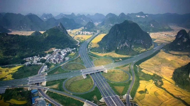 靖西至那坡高速公路是广西高速公路网布局“四纵六横”规划中的重要组成部分,是广西规划建设的出海出边大通道的重要项目。靖那路建设以“边关风情、美丽靖那”为目标,尝试突破原有理念,不仅将高速公路建设成为一条通行线路,同时也建设成为一个具备动态观赏功能的带状景区。道路建设期间,有意识地采取保护措施,最低限度地破坏原生植被与环境,保留沿线优美风光,同时充分考虑道路组成要素与周围环境的融合,严格把控构造物外观质量,创造良好的视觉形象和行车环境,实现路与自然的和谐之美。