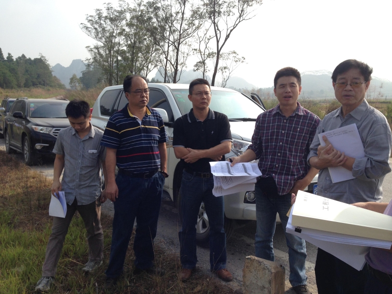 10月20日至21日,广西龙靖高速公路有限责任公司在靖西组织召开了靖西至龙邦高速公路(下简称“靖龙路”)施工图设计工程地质详细勘察专项验收会议。广西交通投资集团公司、广西高速公路投资有限公司、广西龙靖高速公路有限责任公司、咨询审查单位云南省公路勘察设计研究院等单位的代表共15人参加了会议。我院对本次地质专项验收会议极为重视,院级领导阮志新副院长、总工办米德才专业副总、岩土工程勘察设计分院黄泽斌院长等均出席会议。